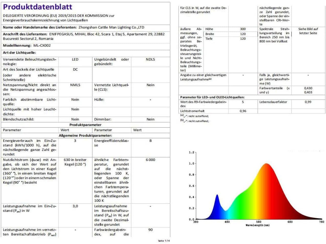 Functii: Dimabila, 3 temperaturi culoare, control touch