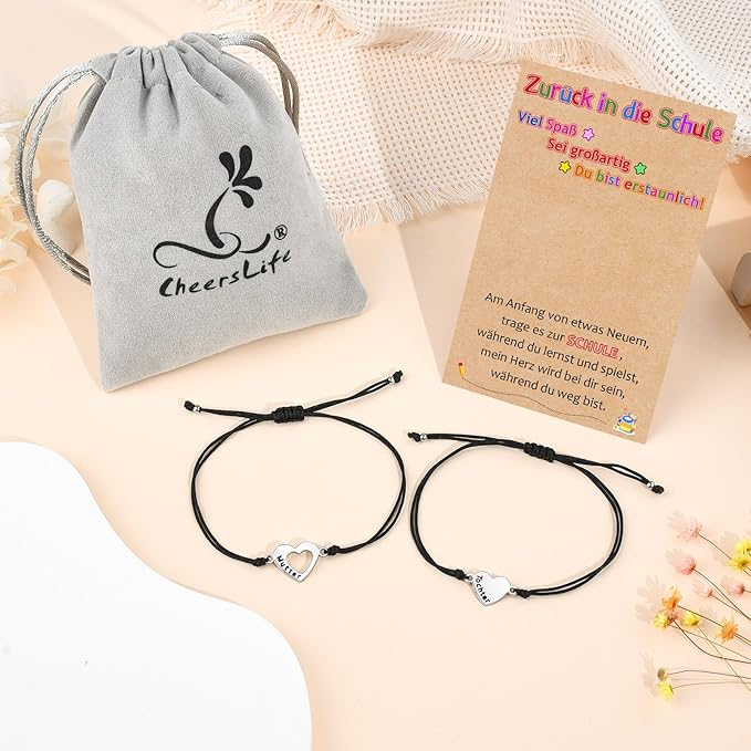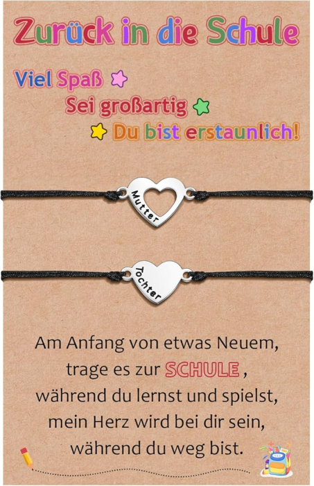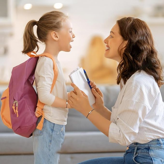 Set elegant de brățări „Back to School” de la CheersLife, pentru mamă și copil (fată sau băiat), realizat cu un design inspirat de inimă. Disponibil în variante de 2 până la 6 brățări cu look uniform (matching), acest accesoriu simbolic transmite un mesaj de afecțiune și prezență, chiar și atunci când sunt departe, în timpul orelor la școală.