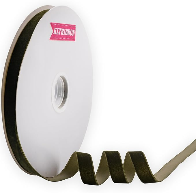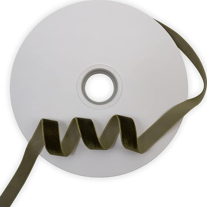Panglica din catifea de nailon, o singura fata, rola 5/8 inch x 25 yarzi, verde muschi. Ideala pentru decor, ambalaje si proiecte handmade.