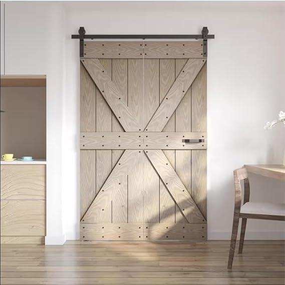Kitul HOCONNIE Sliding Barn Door ofera o solutie eleganta si practica pentru montarea usilor glisante pliabile. Cu o lungime a sinei de 183 cm (6 FT), acest sistem este special conceput pentru 2 usi tip barn door, fiind ideal pentru economisirea spatiului in apartamente, birouri, dormitoare sau dressinguri.