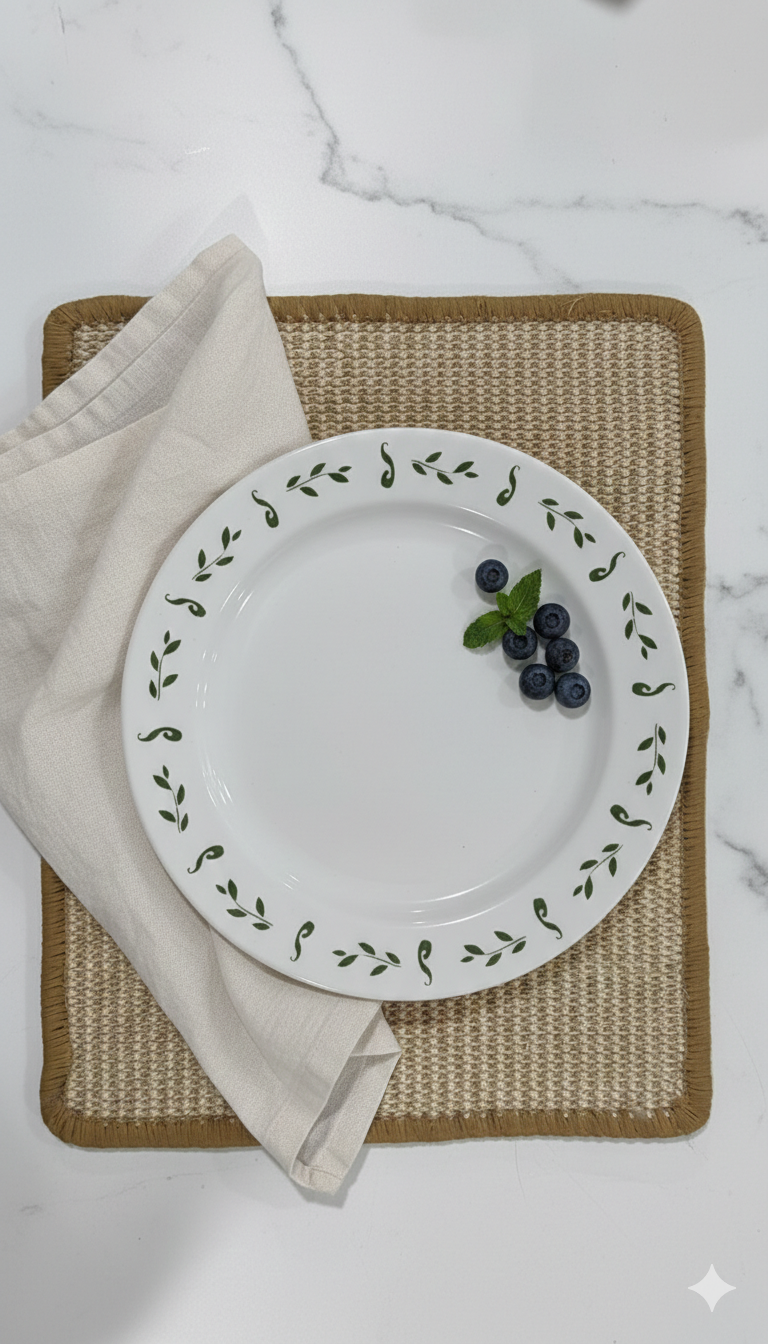 Farfuria intinsa din portelan, cu diametrul de 24 cm, este ideala pentru servirea preparatelor principale, a pastelor sau a salatelor. Designul clasic, cu decor vegetal verde pe fond alb, se potriveste perfect atat meselor de zi cu zi, cat si aranjamentelor elegante.