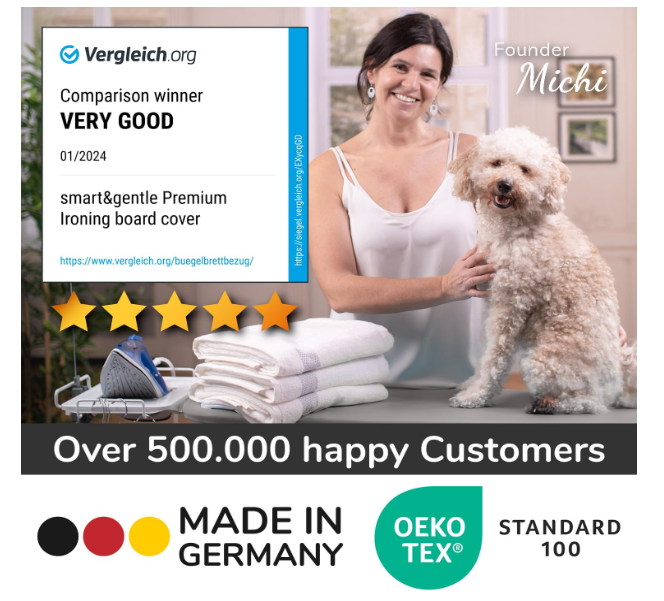 Descoperă confortul și eficiența oferite de husa pentru masă de călcat Smart&Gentle, proiectată în Germania. Aceasta îmbunătățește experiența călcatului, oferind rezultate perfecte și un proces mai rapid și mai simplu. Fabricată din materiale premium, husa este compatibilă cu diferite dimensiuni de mese de călcat și este dotată cu caracteristici care îți vor transforma rutina zilnică.