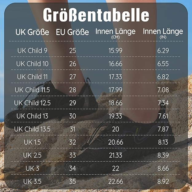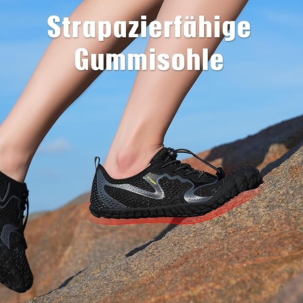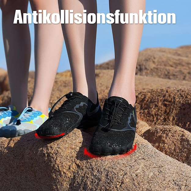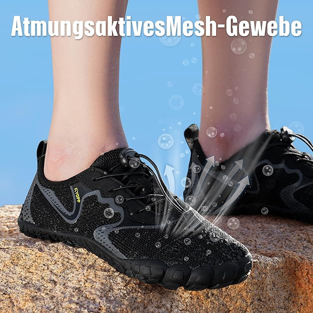 Kyopp Barefoot Shoes pentru copii combină confortul unei senzații de mers desculț cu performanța optimă în activități acvatice și outdoor. Construcție respirabilă din material sintetic elastic care se usucă rapid, asigură picioare uscate și aerisite chiar și pe timpul jocurilor la plajă, piscină sau trail. Talpă flexibilă, din cauciuc anti-alunecare, oferă stabilitate și protecție la obiecte dure sau alunecoase. Boxa supra-câmpie pentru degete permite dezvoltarea sănătoasă a piciorului. Ideal pentru plimbări, alergare ușoară, camping, ciclism ori jocuri în natură.