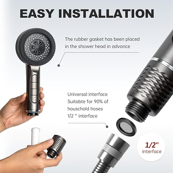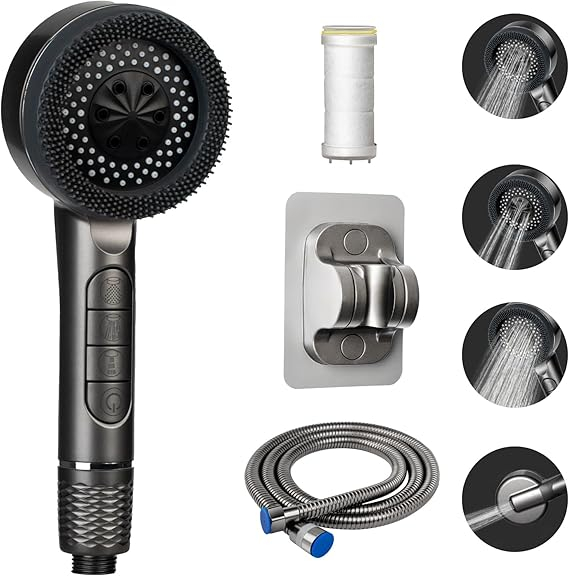 Dusul portabil AIXMEET cu 4 moduri de pulverizare combina confortul cu functionalitatea pentru baie, cada sau curatarea animalelor de companie. Designul ergonomic include un filtru integrat pentru apa, care ajuta la reducerea impuritatilor si la protejarea pielii si a parului.