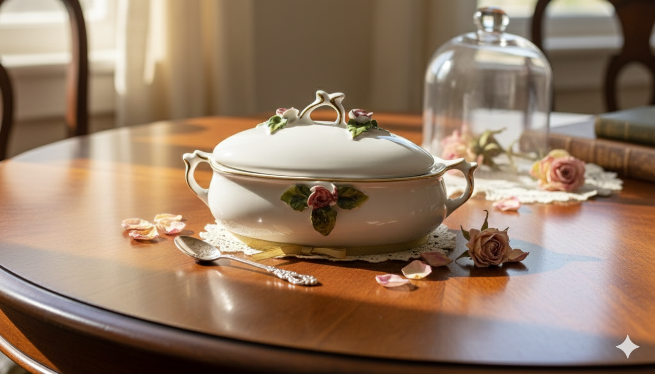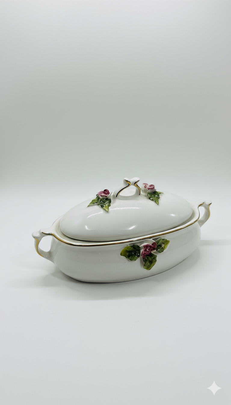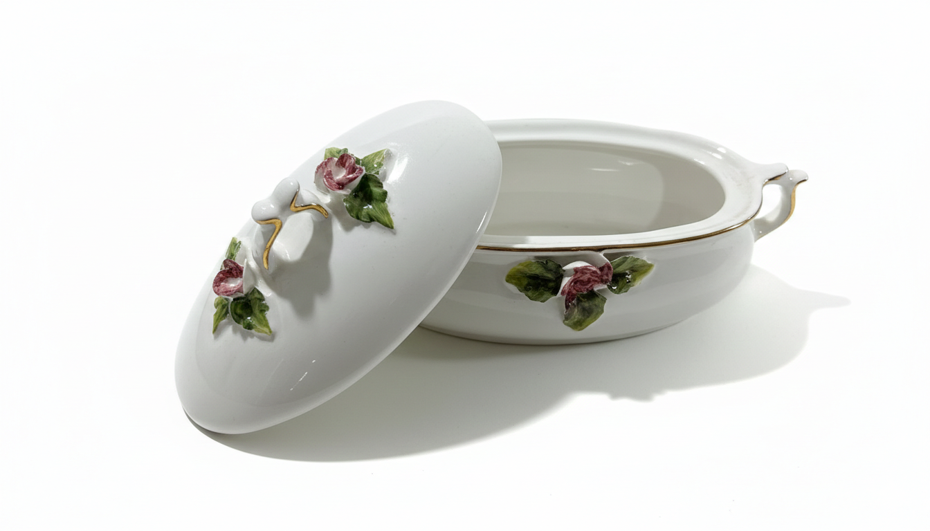 Caseta din portelan, Violeta, alba, pentru servire si prezentare