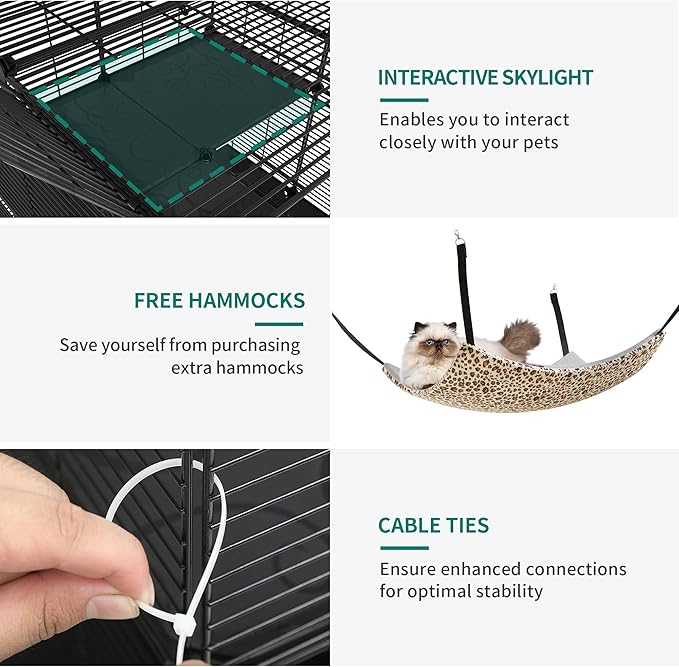 Cusca YITAHOME 4 Tier ofera un mediu sigur si confortabil pentru 1-3 pisici sau alte animale mici. Cu dimensiuni de 104 x 72 x 140 cm, aceasta ofera spatiu vertical optim pentru explorare, somn si relaxare.