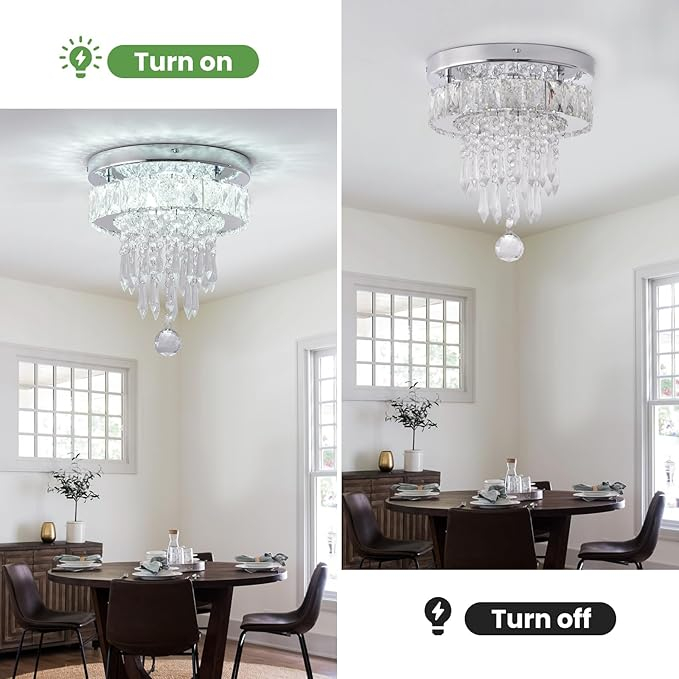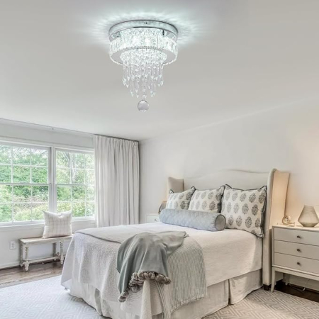 Echipata cu LED integrat de 20W si temperatura de culoare 6500K (alb rece), aceasta plafoniera asigura o iluminare eficienta si uniforma, perfecta pentru living, dormitor, hol sau birou. Cristalele K9 de inalta calitate reflecta lumina intr-un mod elegant, adaugand un plus de stil decorului interior.