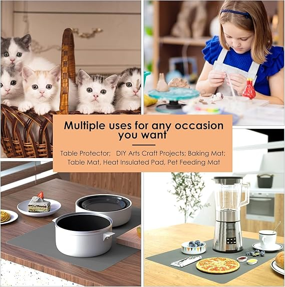 Protejează suprafețele și organizează-ți activitățile creative cu covorașul din silicon KitchenRaku, extra-large, de 60 x 80 cm, cu grosime de 1.5 mm. Materialul non-slip asigură stabilitate în timpul lucrului, iar rezistența la căldură permite utilizarea pentru proiecte ce implică temperaturi ridicate. Ideal pentru DIY, pictură, rășină, cusut sau gătit, covorașul poate fi folosit atât acasă, cât și în ateliere. Curățarea este simplă, materialul fiind ușor de spălat și reutilizabil.