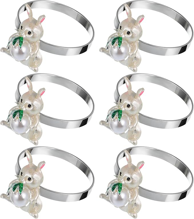 Set 6 inele metalice pentru servetele Operitacx, model iepuras, ideale pentru masa de Paste si decor de primavara.