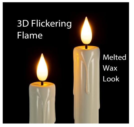 • Aspect realist: arată ca niște lumânări adevărate, indiferent dacă sunt privite de la distanță sau de aproape. Sunt mai elegante decât lumânările LED obișnuite și, în plus, nu există fum sau alte pericole asociate cu lumânările reale.