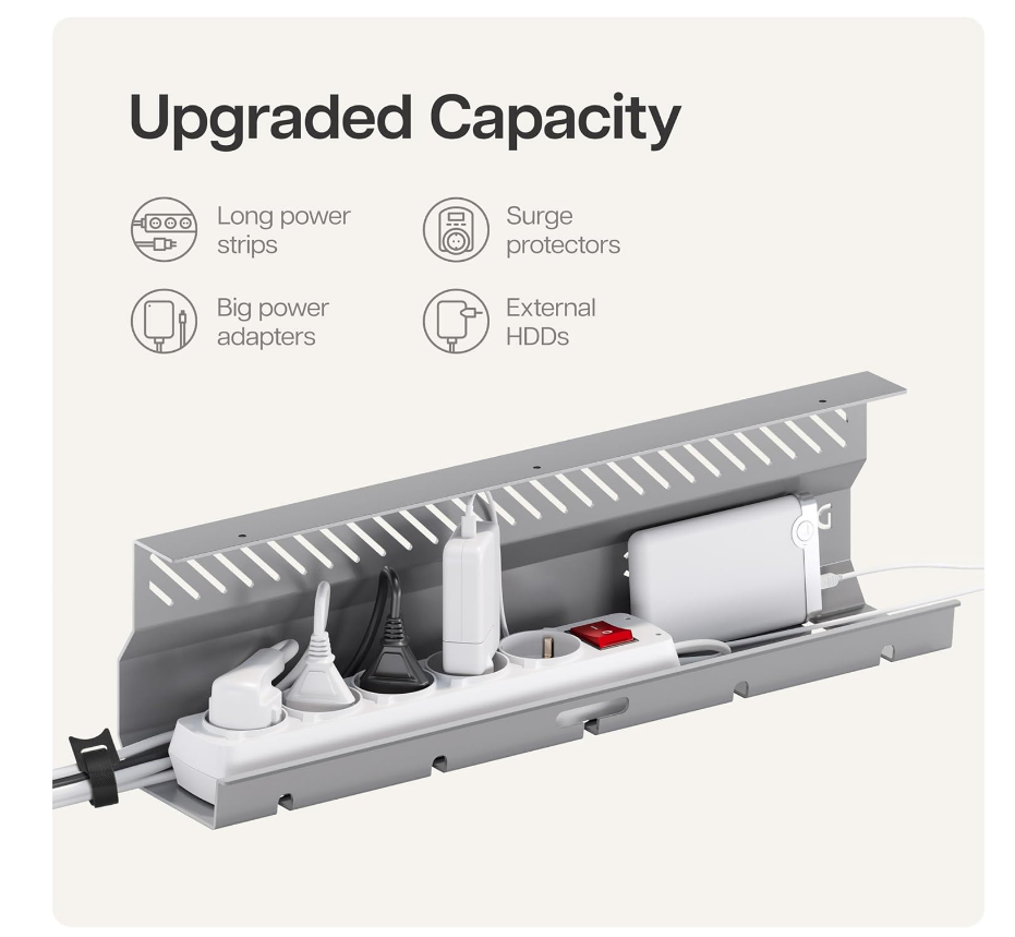 Ideal pentru birouri de acasă, spații de lucru partajate sau orice mediu în care gestionarea cablurilor este esențială.