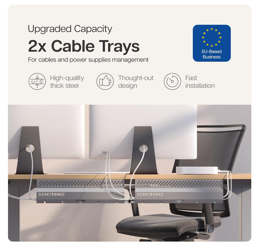 Montaj simplu: Se montează ușor sub birou, economisind spațiu și menținând cablurile ascunse.
