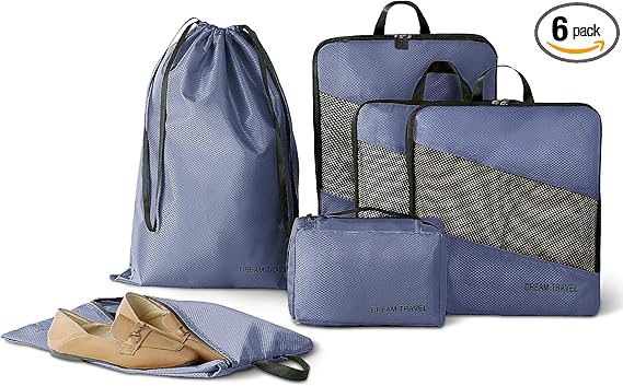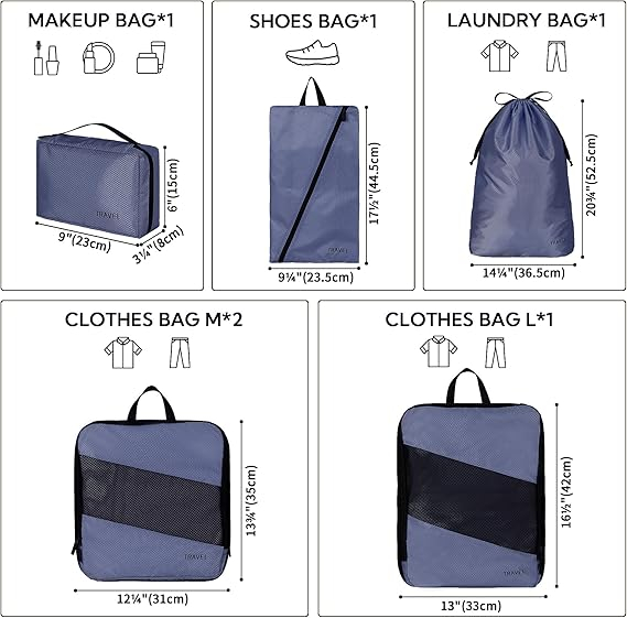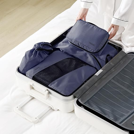 Set 6 organizatoare haine pentru calatorie GRANNY SAYS, usoare si rezistente, culoare albastra.