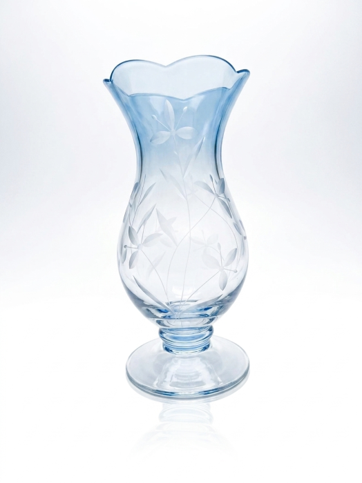 Vaza Mother Blur cu picior, realizata din sticla transparenta si decorata cu model floral gravat, este alegerea ideala pentru aranjamente elegante. Inaltimea de 23 cm o face potrivita pentru orice spatiu.