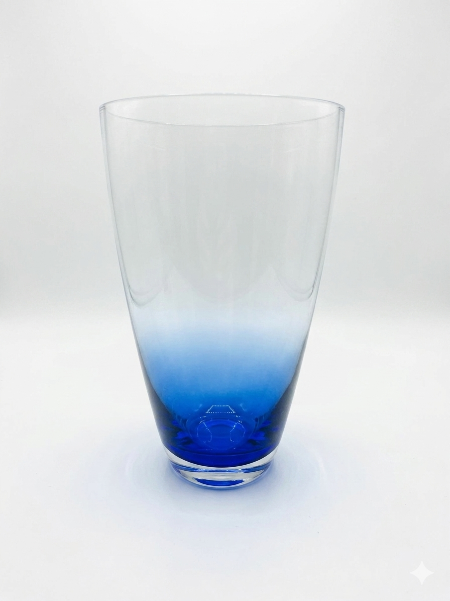 Vaza eleganta din sticla albastra, cu forma conica, ideala pentru flori naturale sau artificiale. Design modern, potrivit pentru orice decor.