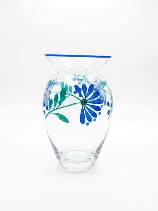 Vaza decorativa, pictata manual  este o piesa deosebita, perfecta pentru a adauga culoare si stil oricarui spatiu. Realizata din sticla de calitate, aceasta vaza impresioneaza prin modelul clasic, care creeaza un efect vizual placut si elegant.
