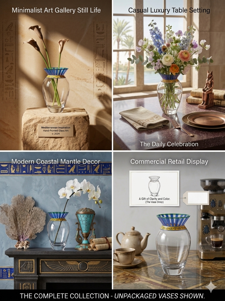 Forma ei, ofera un aspect sofisticat si permite asezarea armonioasa a florilor. Este potrivita atat pentru flori naturale, cat si artificiale, fiind ideala pentru living, dormitor, birou sau chiar pentru evenimente speciale.